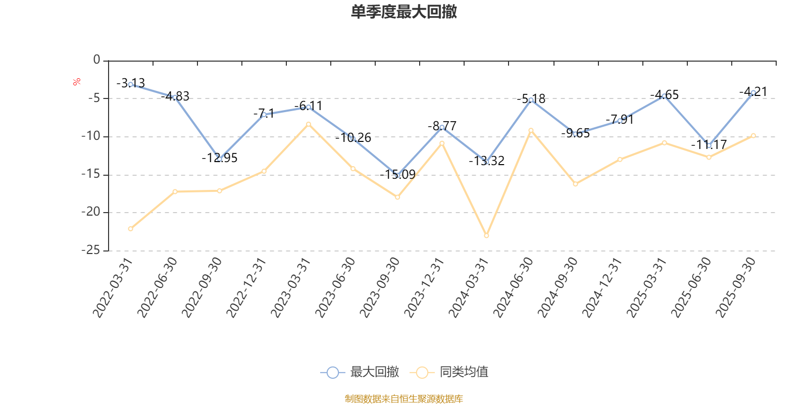 截至10月27日,基金近三年最大回撤为29.43%,同类可比基金排名8/159。单季度最大回撤出现在2023年三季度,为15.09%。