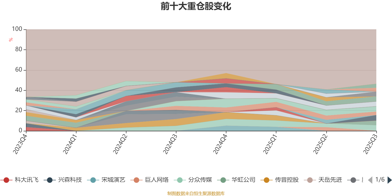 截至2025年三季度末,基金十大重仓股分别是分众传媒、中兴通讯、寒武纪、中国平安、中芯国际、天孚通信、华虹公司、浪潮信息、昆仑万维、南方传媒。