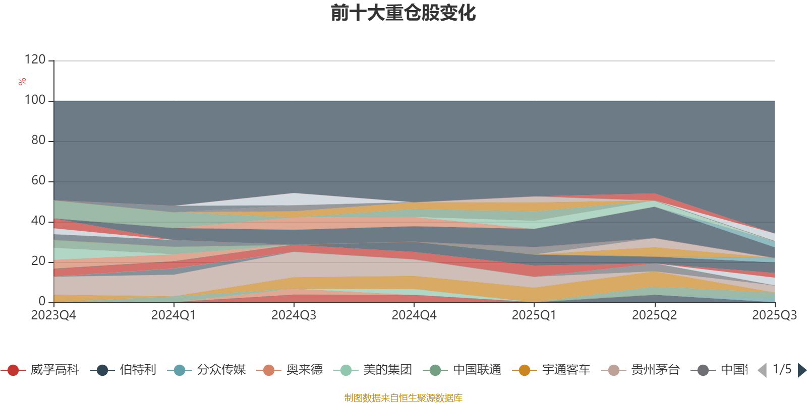 截至2025年三季度末,基金十大重仓股分别是比亚迪、上汽集团、宁德时代、松原安全、贵州茅台、爱柯迪、中国联通、潍柴动力、扬农化工、分众传媒。