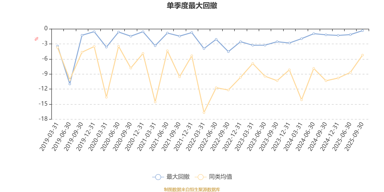 截至10月27日,基金近三年最大回撤为6.79%,同类可比基金排名110/1274。单季度最大回撤出现在2019年二季度,为10.99%。