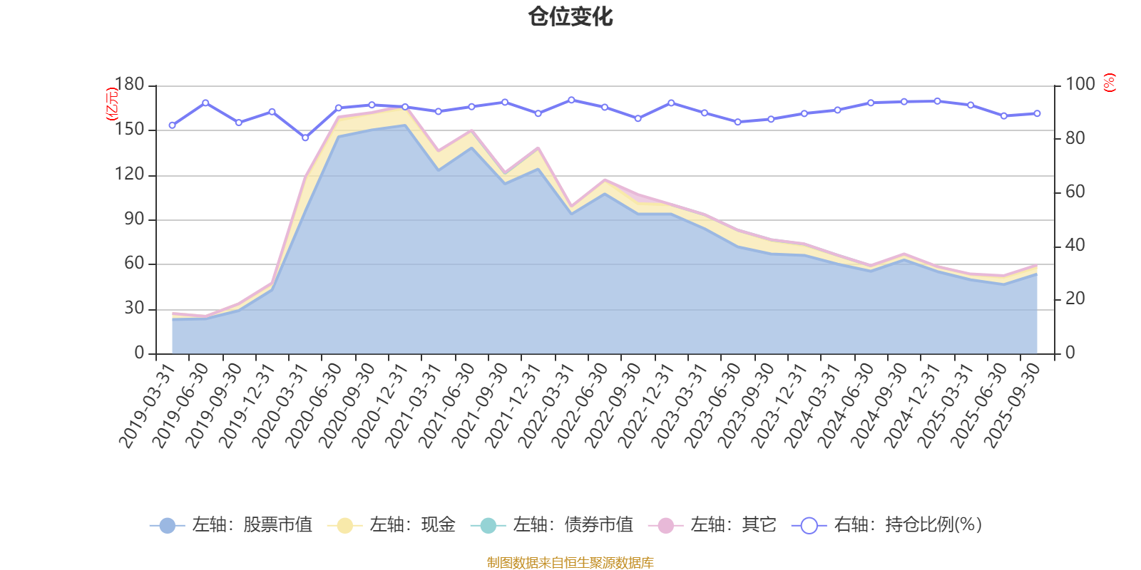 据定期报告数据统计,近三年平均股票仓位为90.86%,同类平均为87.09%。2022年一季度末基金达到94.62%的最高仓位,2020年一季度末最低,为80.54%。