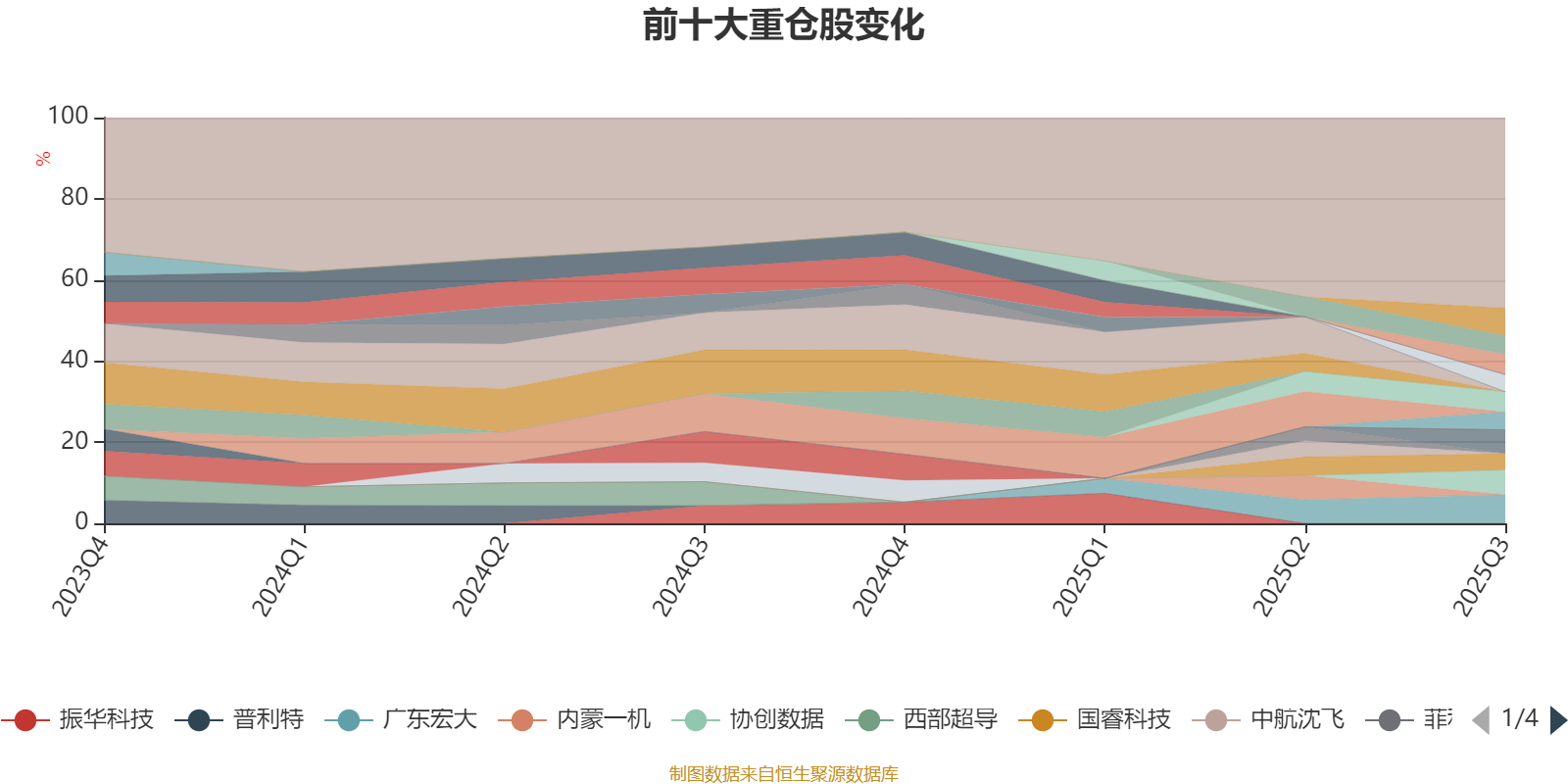 该基金持股集中度较高。截至2025年三季度末,基金十大重仓股分别是广东宏大、昭衍新药、协创数据、顺网科技、复旦微电、火炬电子、中航成飞、寒武纪、思源电气、国睿科技。