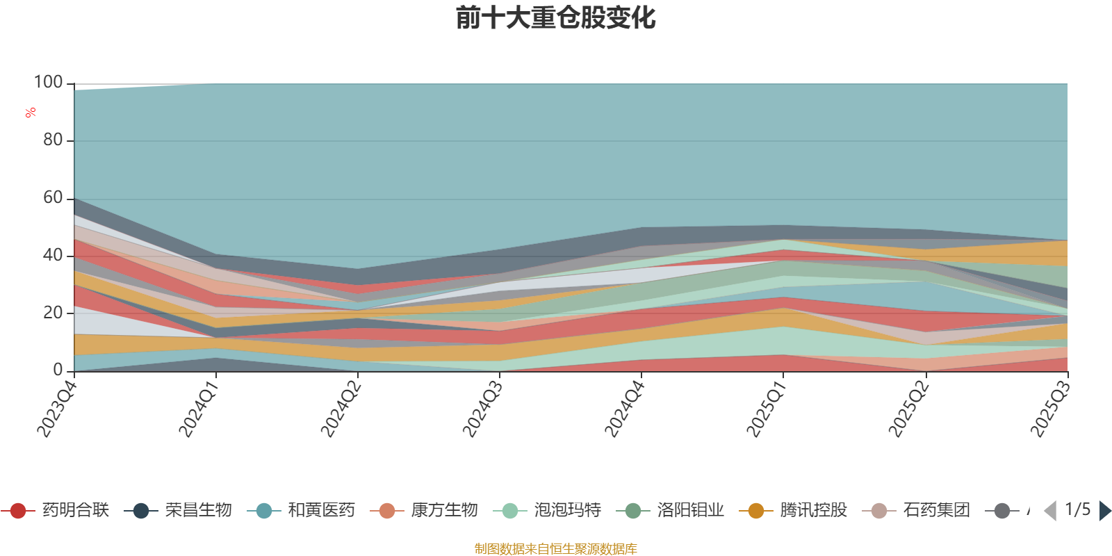 截至2025年三季度末,基金十大重仓股分别是华虹半导体、阿里巴巴-W、腾讯控股、药明合联、药明生物、康方生物、洛阳钼业、隆盛科技、巨子生物、香港交易所。