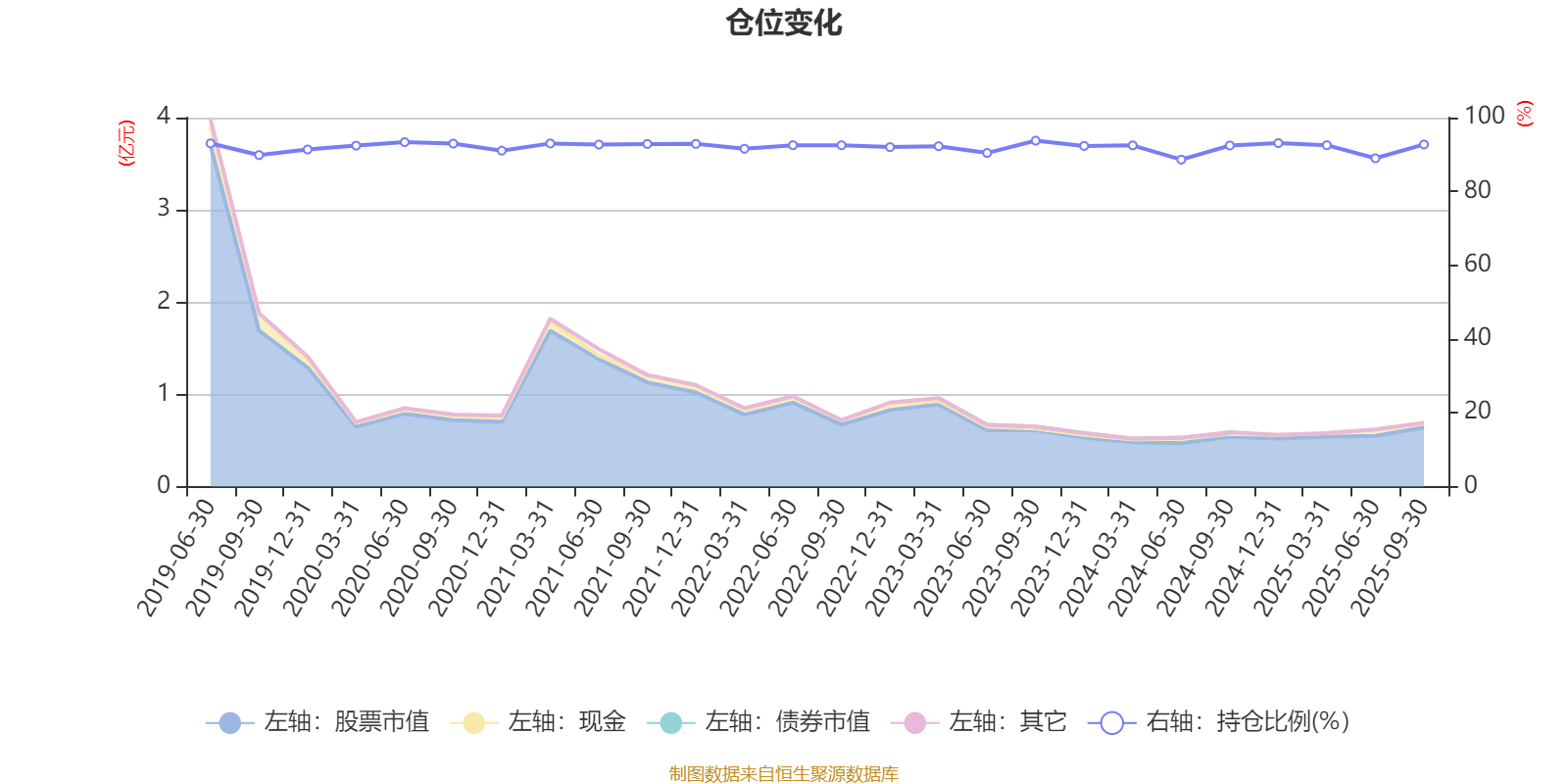 据定期报告数据统计,近三年平均股票仓位为91.8%,同类平均为83.73%。2023年三季度末基金达到93.75%的最高仓位,2024年上半年末最低,为88.61%。