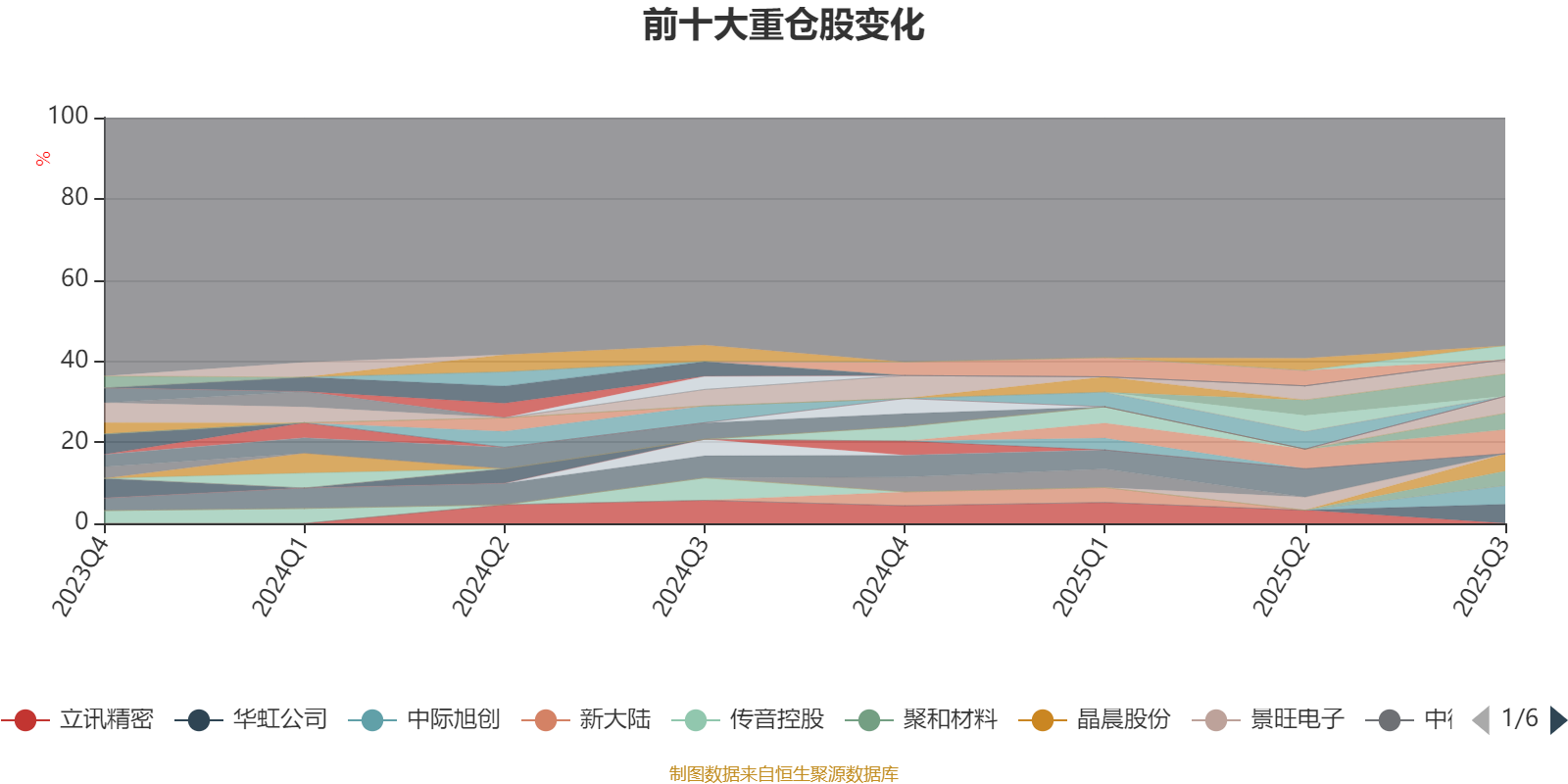 截至2025年三季度末,基金十大重仓股分别是生益科技、海光信息、华虹公司、中际旭创、晶晨股份、寒武纪、深南电路、聚和材料、沪电股份、瑞芯微。