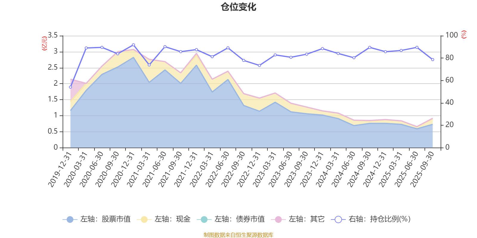 据定期报告数据统计,近三年平均股票仓位为83.65%,同类平均为86.77%。2020年末基金达到91.86%的最高仓位,2019年末最低,为54.09%。