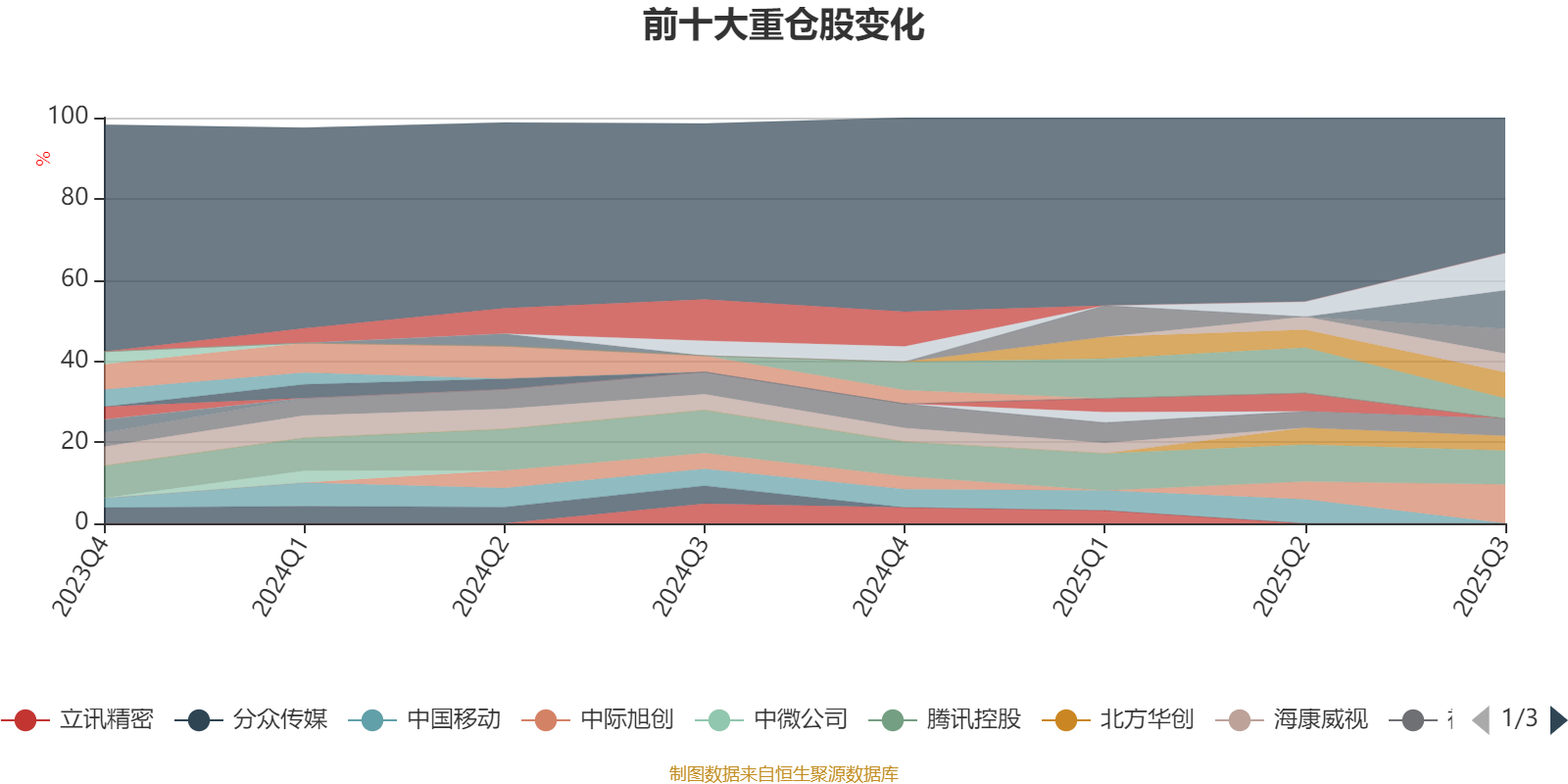 截至2025年三季度末,基金十大重仓股分别是中际旭创、工业富联、新易盛、腾讯控股、中芯国际、阿里巴巴-W、小米集团-W、沪电股份、福耀玻璃、北方华创。