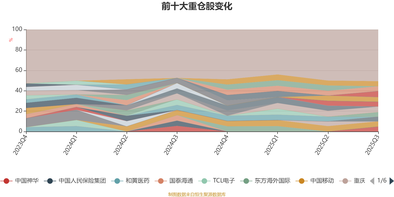 截至2025年三季度末,基金十大重仓股分别是中国银河、新华保险、中国移动、电讯盈科、中国神华、招商局港口、中远海控、汇丰控股、农业银行、光大环境。