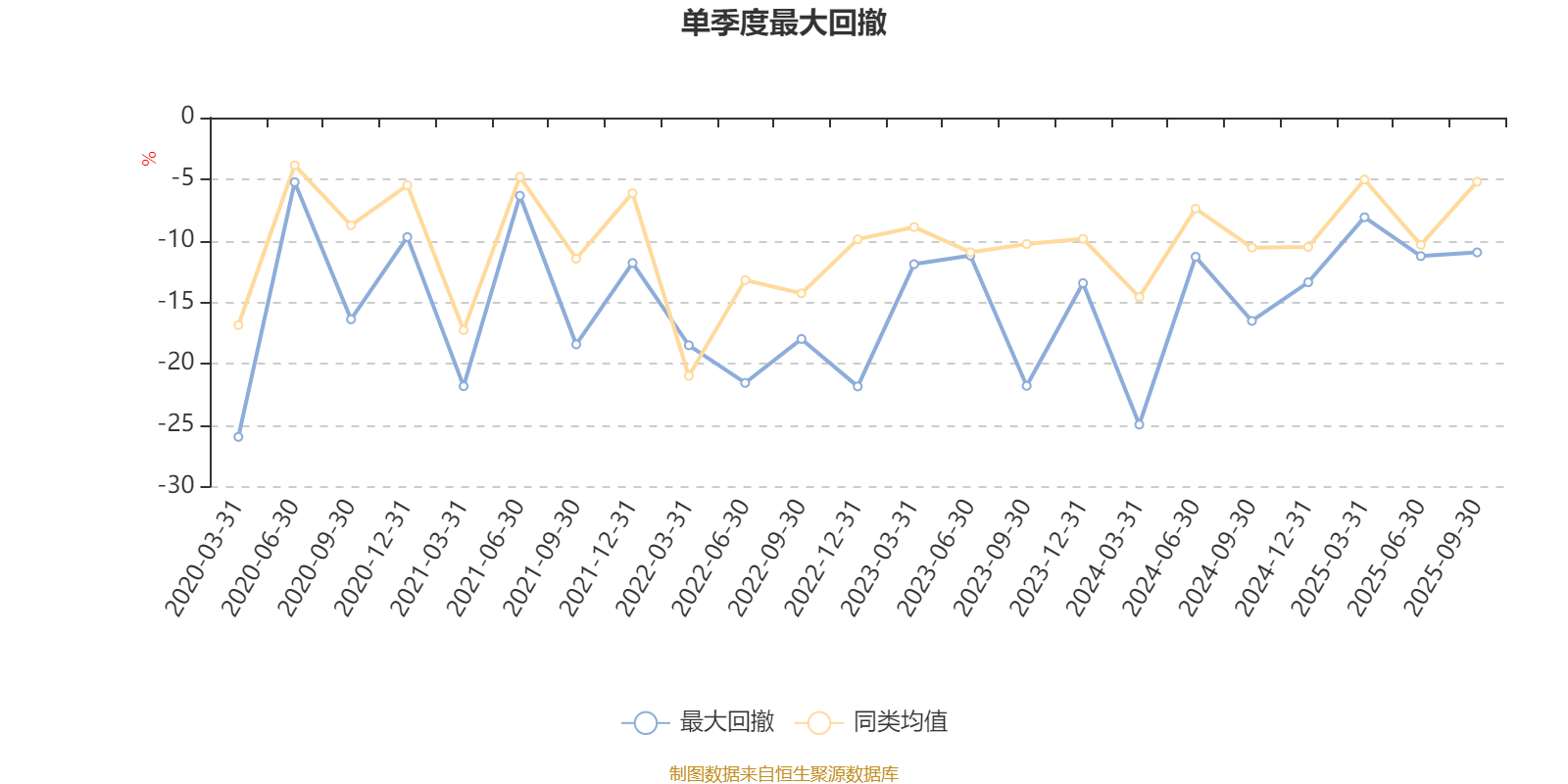 截至10月27日,基金近三年最大回撤为41.29%,同类可比基金排名100/124。单季度最大回撤出现在2020年一季度,为25.96%。