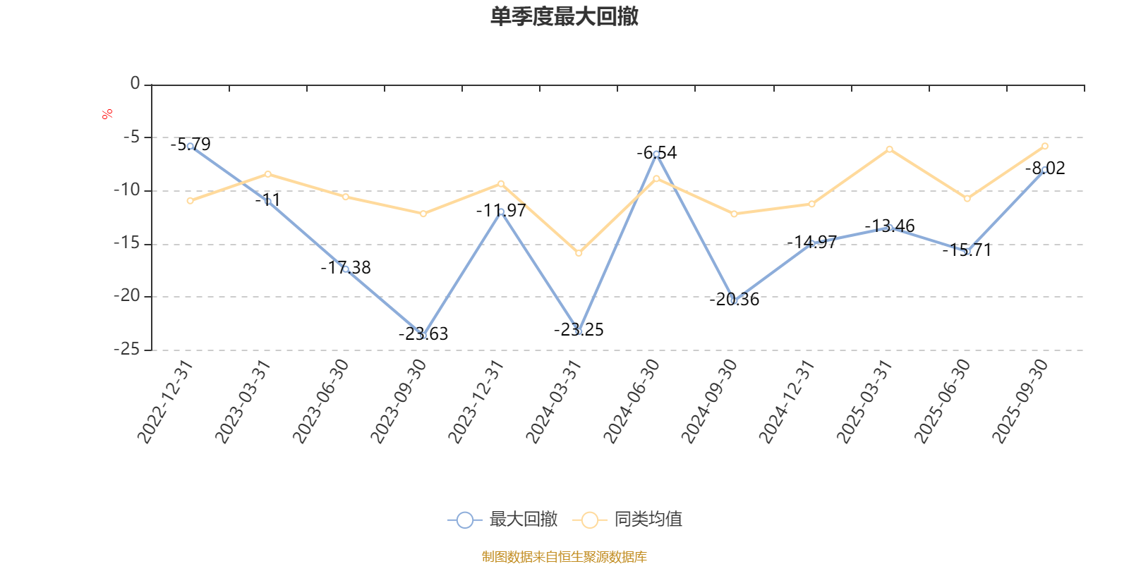 截至10月27日,基金近三年最大回撤为49.95%,同类可比基金排名332/363。单季度最大回撤出现在2023年三季度,为23.63%。