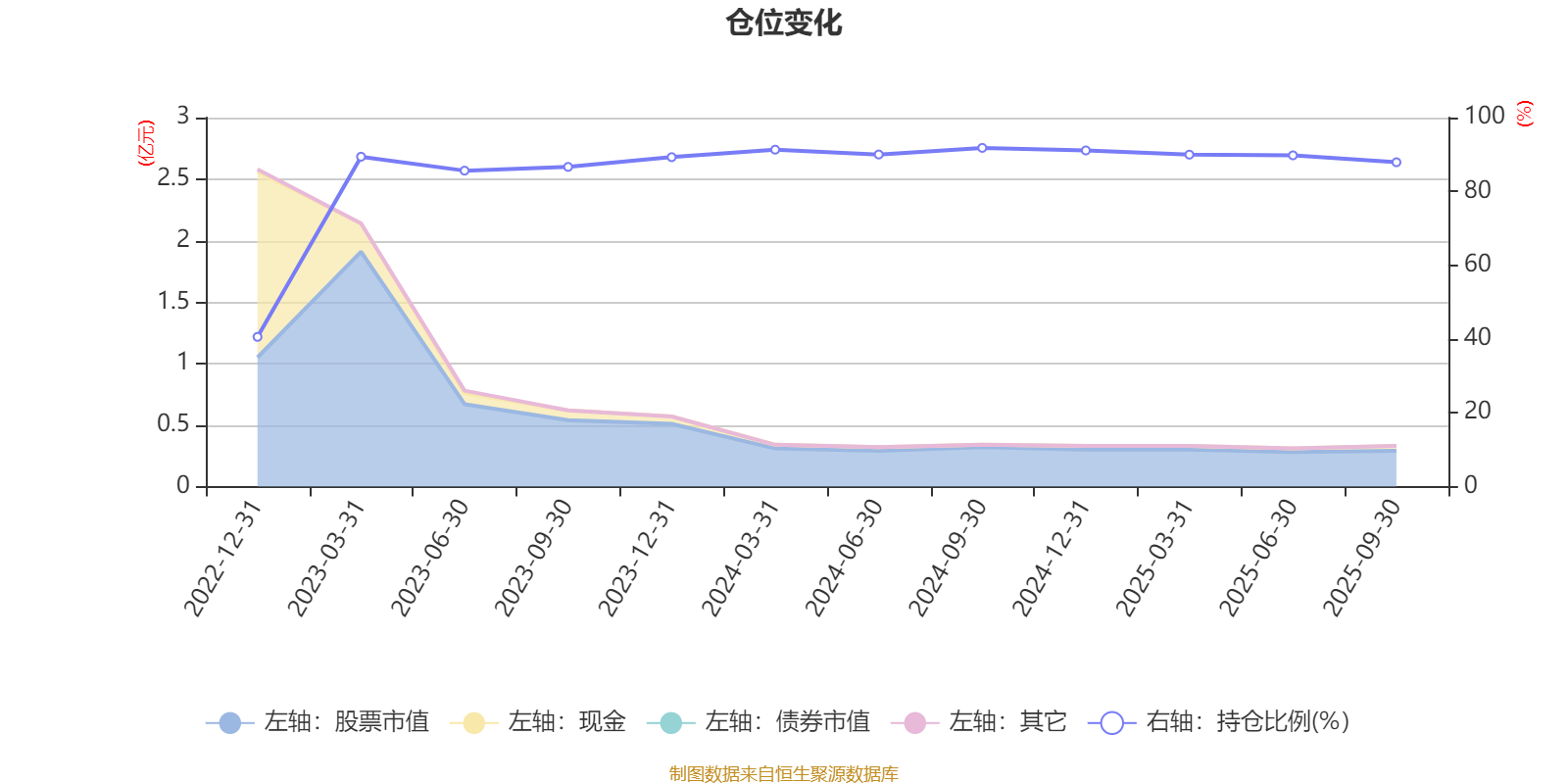 据定期报告数据统计,近三年平均股票仓位为85.28%,同类平均为83.73%。2024年三季度末基金达到91.79%的最高仓位,2022年末最低,为40.57%。