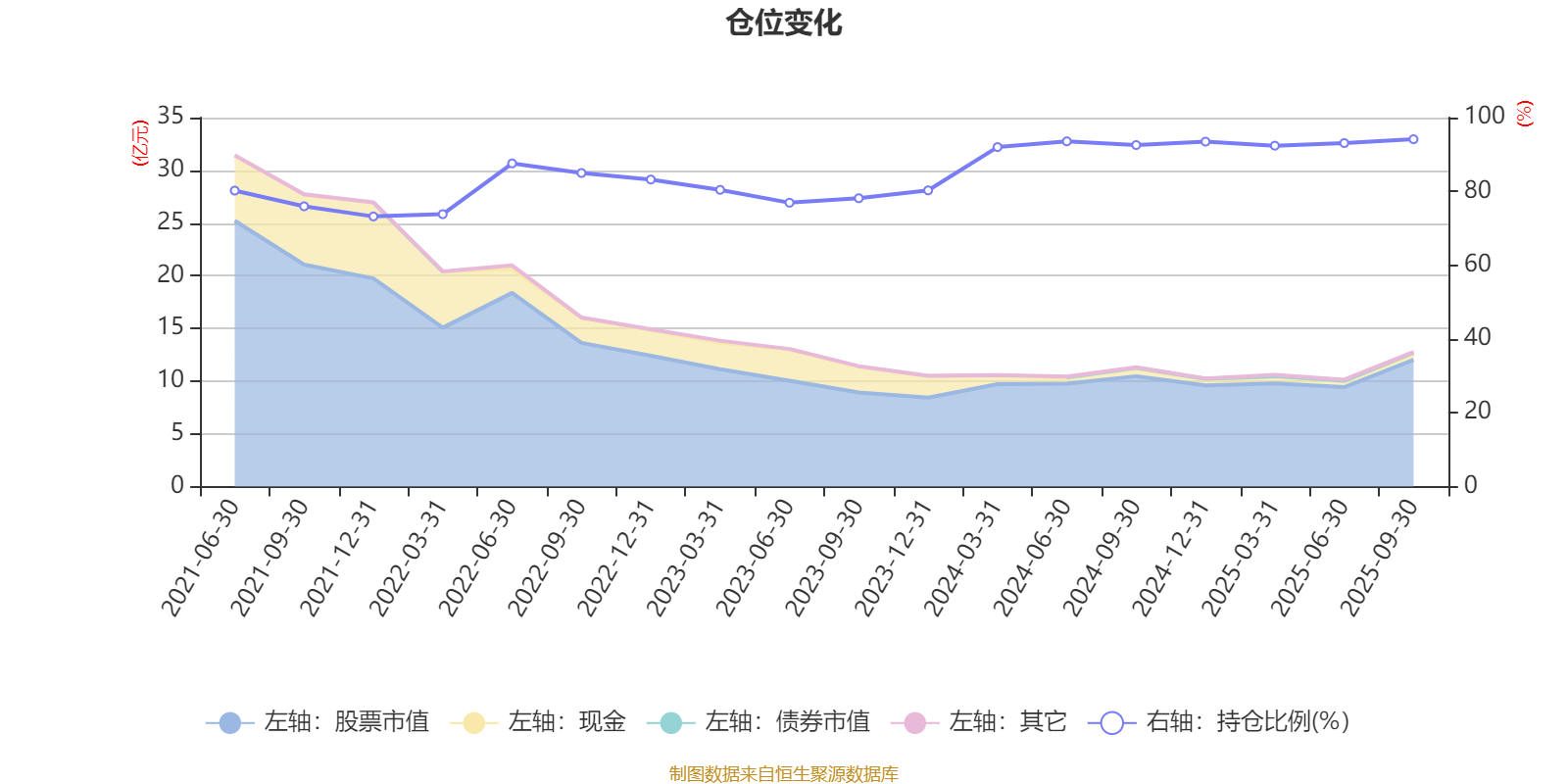 据定期报告数据统计,近三年平均股票仓位为87.52%,同类平均为85.99%。2025年三季度末基金达到94.14%的最高仓位,2021年末最低,为73.21%。