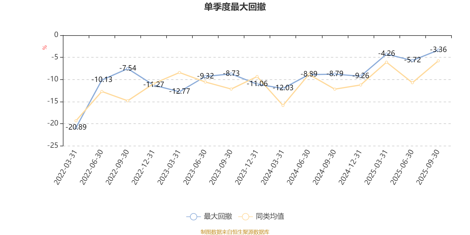 截至10月27日,基金近三年最大回撤为32.04%,同类可比基金排名109/363。单季度最大回撤出现在2022年一季度,为20.89%。
