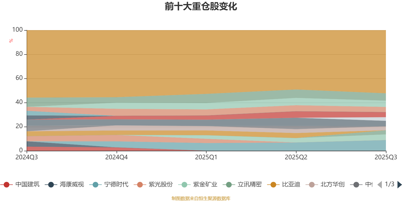 截至2025年三季度末,基金十大重仓股分别是宁德时代、贵州茅台、中国平安、紫金矿业、招商银行、美的集团、长江电力、立讯精密、北方华创、中芯国际。