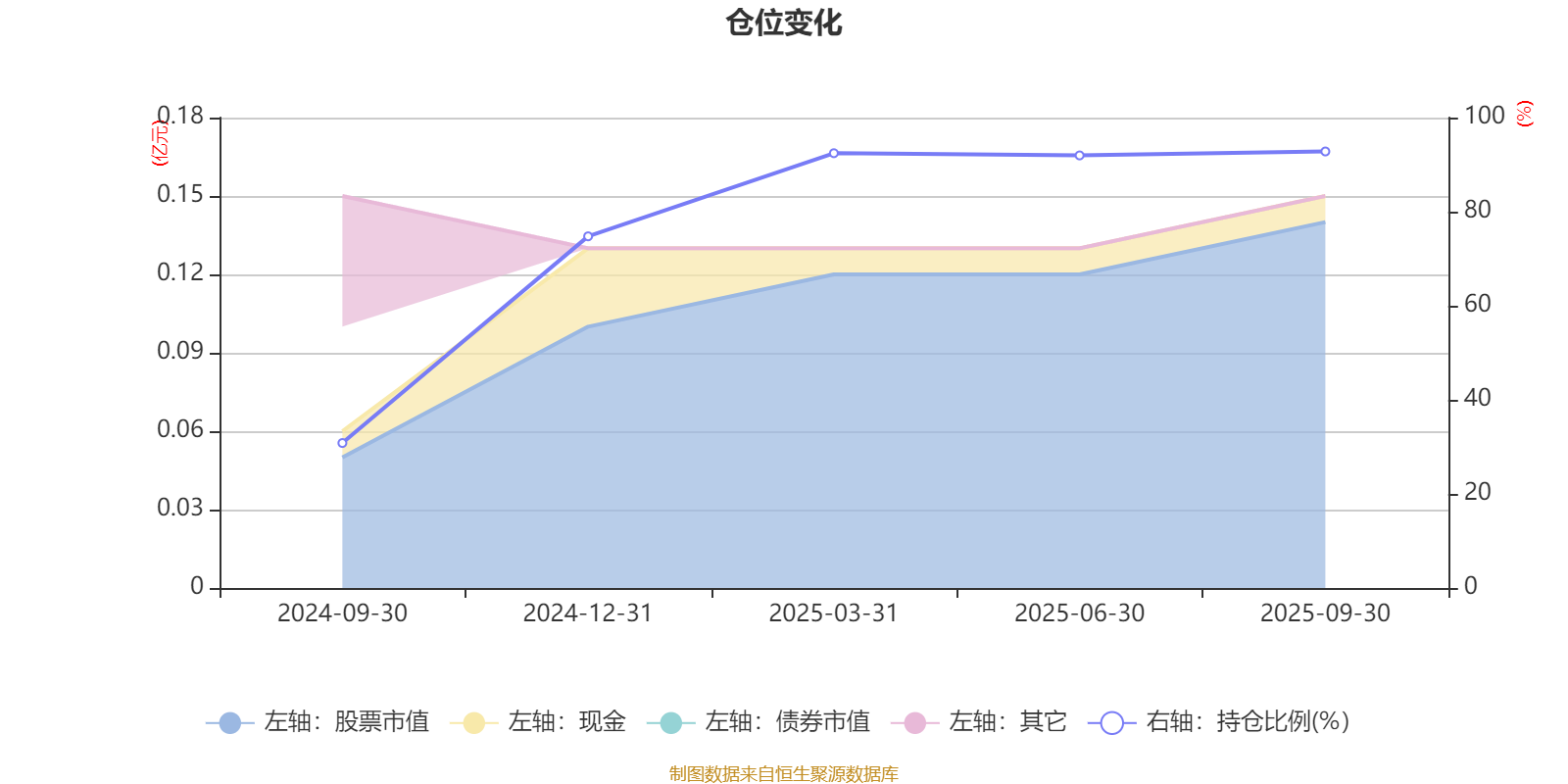 据定期报告数据统计,成立以来平均股票仓位为76.55%,同类平均为83.73%。2025年三季度末基金达到92.8%的最高仓位,2024年三季度末最低,为30.82%。