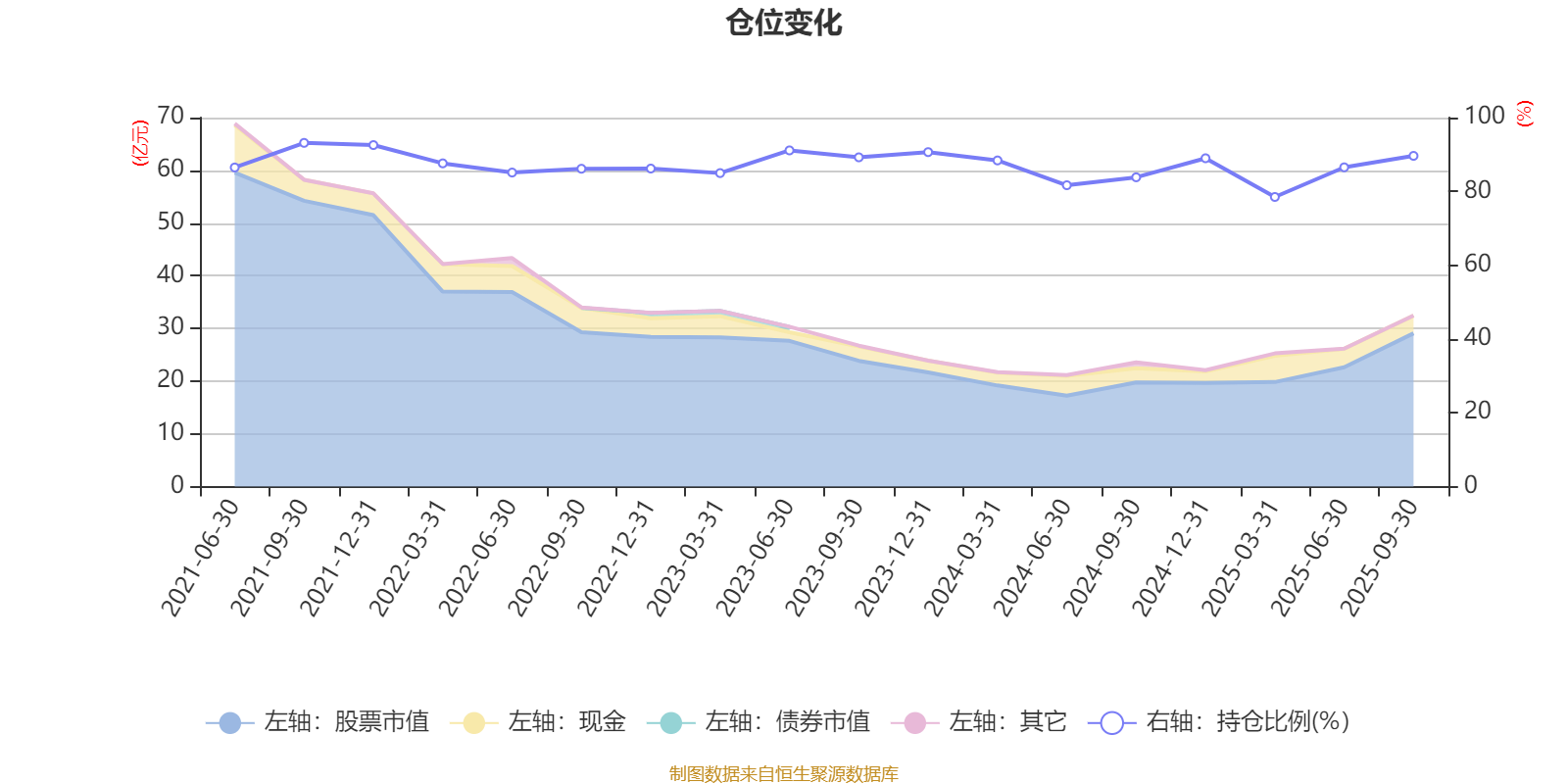 据定期报告数据统计,近三年平均股票仓位为86.64%,同类平均为86.15%。2021年三季度末基金达到93.15%的最高仓位,2025年一季度末最低,为78.49%。