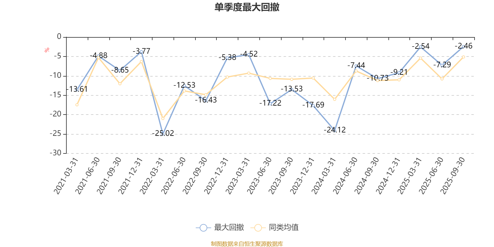 通过所选区间该基金净值增长率分位图,可以观察该基金与同类基金业绩比较情况。图为坐标原点到区间内某时点的净值增长率在同类基金中的分位数。