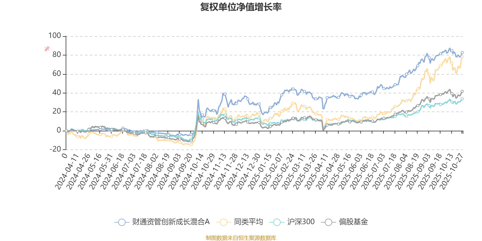 截至10月27日,财通资管创新成长混合A近三个月复权单位净值增长率为15.92%,位于同类可比基金199/229;近半年复权单位净值增长率为35.57%,位于同类可比基金179/229;近一年复权单位净值增长率为50.25%,位于同类可比基金127/213。