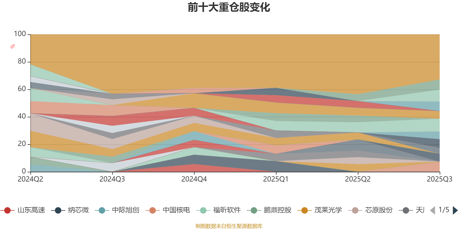 该基金持股集中度较高。截至2025年三季度末,基金十大重仓股分别是中芯国际、兆易创新、七一二、中国核电、南芯科技、海光信息、金地集团、华大九天、恒瑞医药、中恒电气。