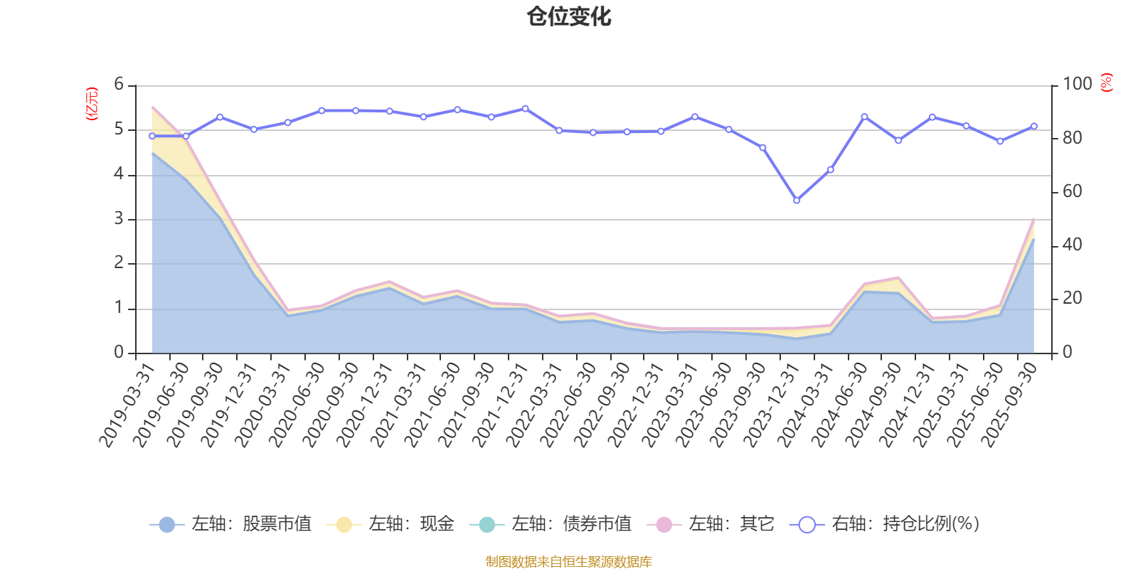 据定期报告数据统计,近三年平均股票仓位为80.13%,同类平均为83.73%。2021年末基金达到91.31%的最高仓位,2023年末最低,为57.06%。