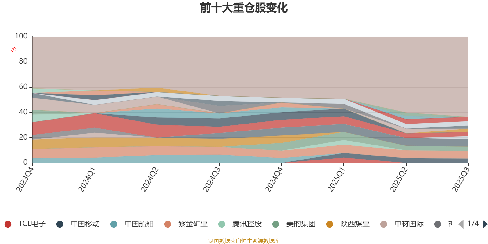 截至2025年三季度末,基金十大重仓股分别是紫金矿业、招商银行、中国海洋石油、华润万象生活、中国移动、中国电信、美的集团、中国中冶、舜宇光学科技、巨化股份。