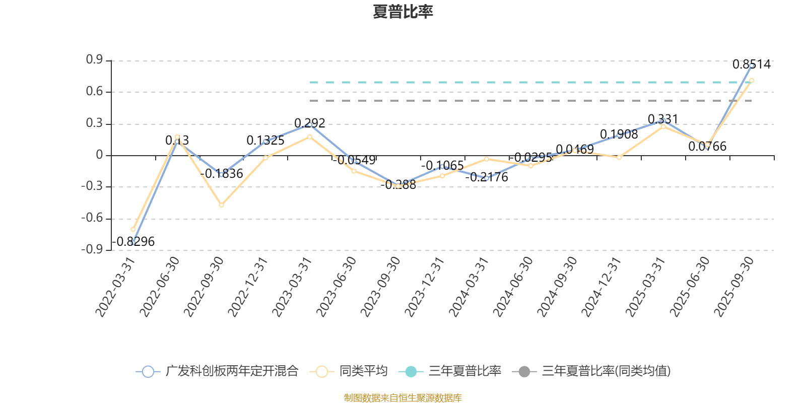 截至9月30日,基金近三年夏普比率为0.6918,位于同类可比基金147/518。