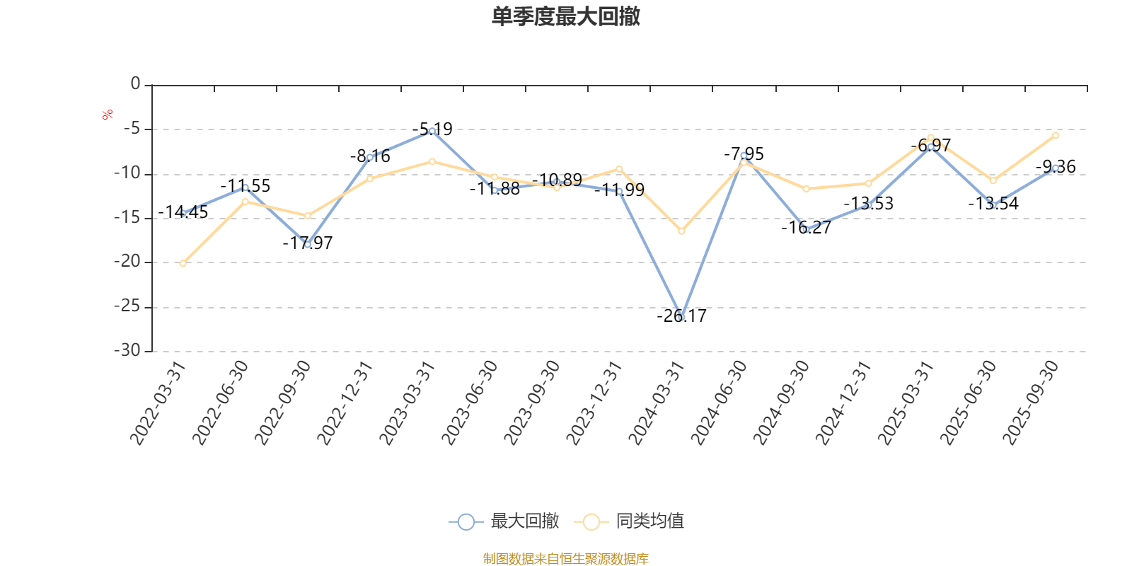 截至10月27日,基金近三年最大回撤为42.25%,同类可比基金排名397/513。单季度最大回撤出现在2024年一季度,为26.17%。