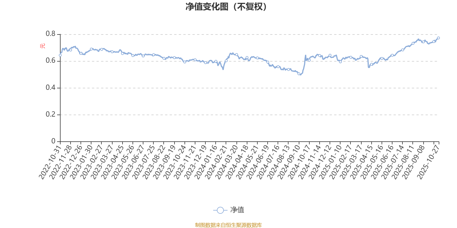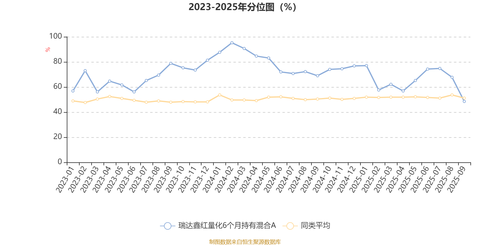 通过所选区间该基金净值增长率分位图,可以观察该基金与同类基金业绩比较情况。图为坐标原点到区间内某时点的净值增长率在同类基金中的分位数。
