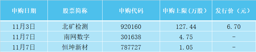 本周A股将有3只股票发行申购,其中科创板1只,创业板1只,北交所1只。