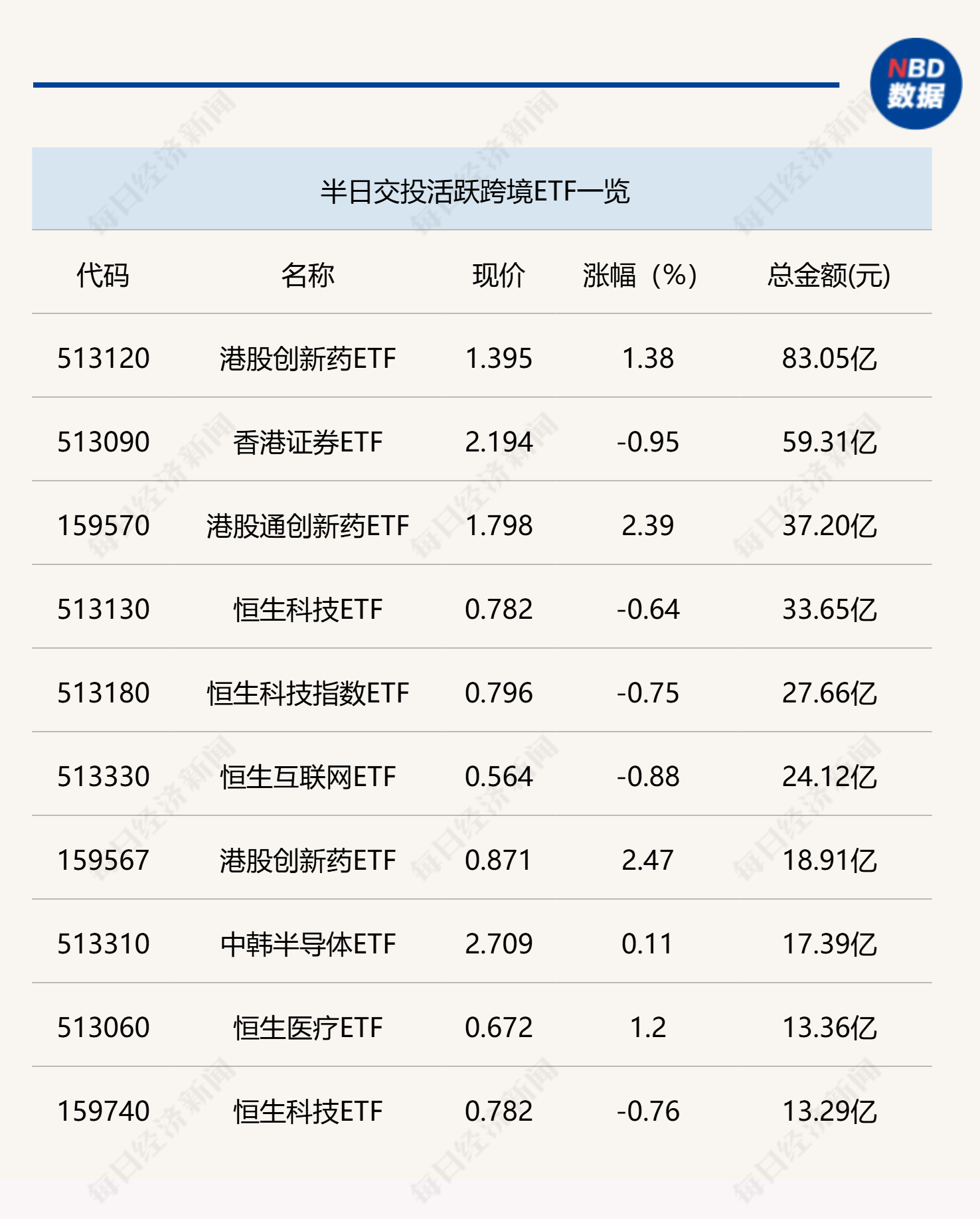 (原标题:行业ETF风向标丨港股创新药ETF交投活跃,2只能源ETF半日涨幅超3%)