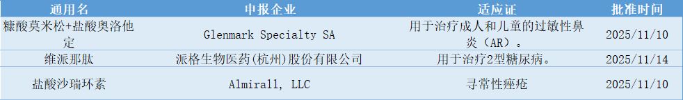 当周,有3款创新药获批。