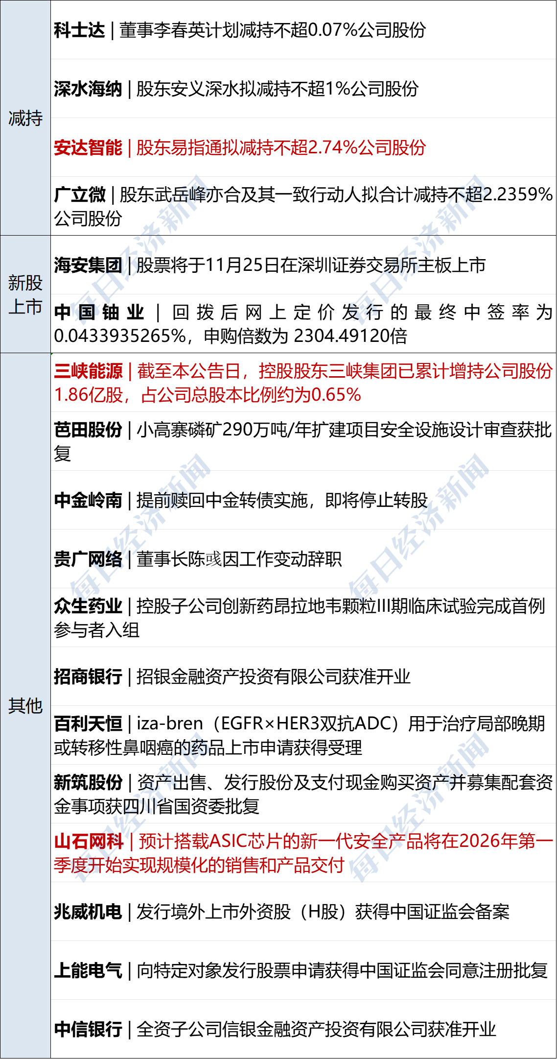 闻泰科技(SH600745,股价42.36元,市值527.23亿元):11月23日,闻泰科技官方微信号发布关于敦促安世荷兰切实回应沟通解决控制权问题以保障全球供应链稳定的声明。声明称,尽管我方展现出最大诚意,安世荷兰方面迄今未对我方的沟通提议作出任何实质性回应。鉴于此,我们要求安世荷兰能在切实尊重事实和法律的基础上,就如何恢复闻泰科技的合法控制权与完整股东权利,提出具有建设性且真正富有诚意的解决方案。