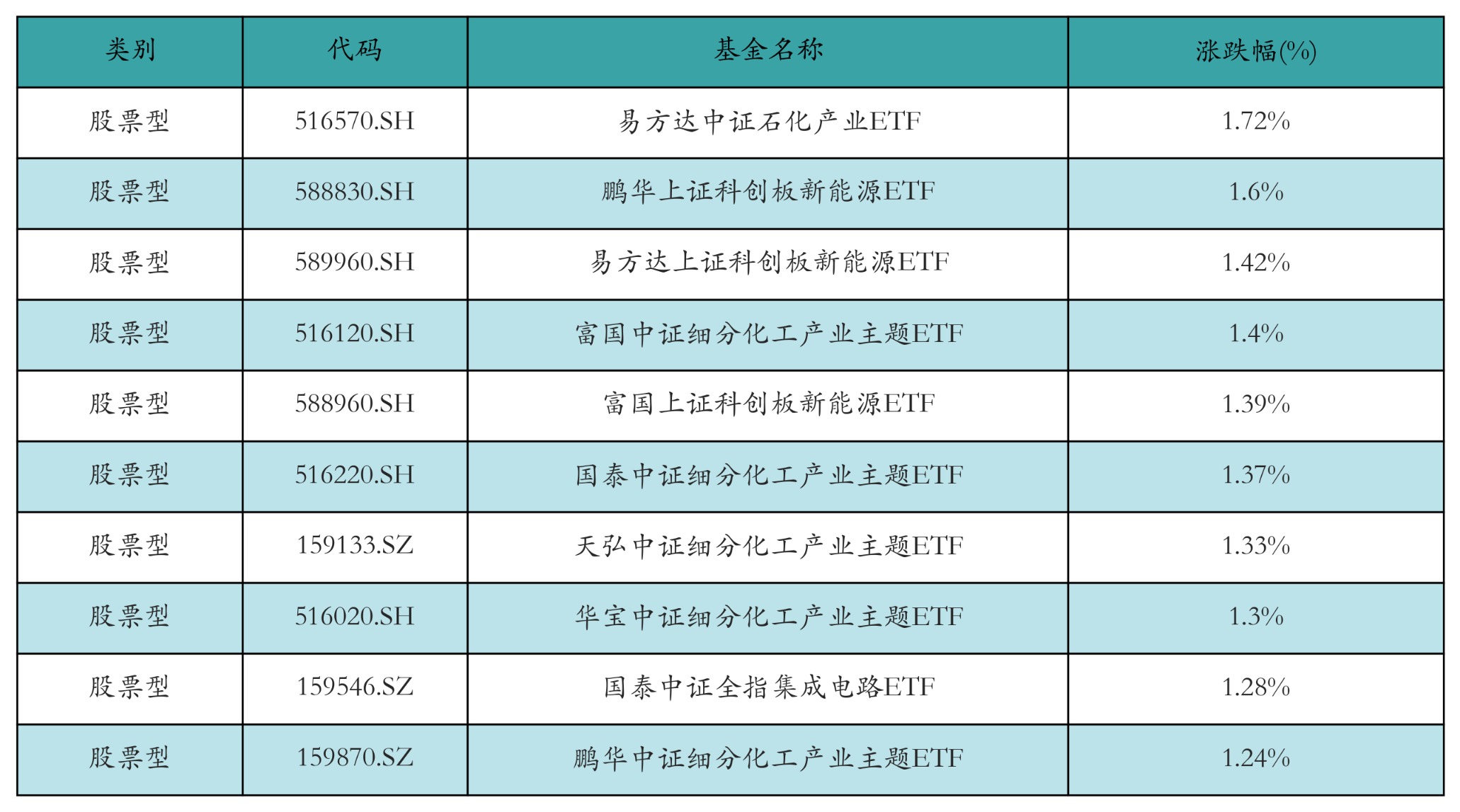 石化ETF、化工产业相关ETF涨幅居前丨ETF基金日报