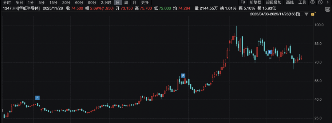 11月28日,半导体板块逆市走强。其中,华虹半导体上涨2.34%。