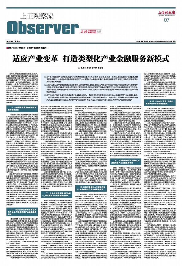 上证观察家 | 适应产业变革 打造类型化产业金融服务新模式