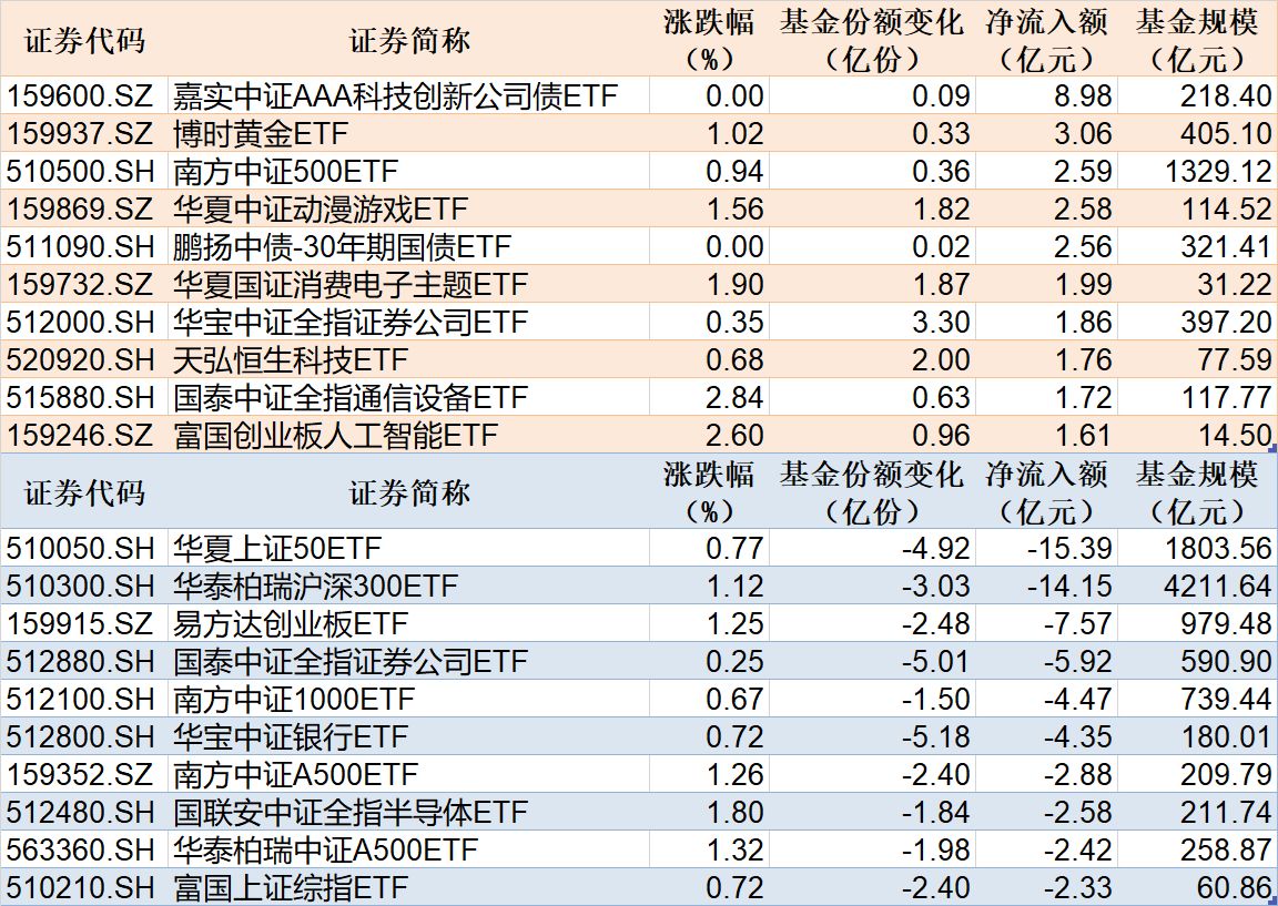 (原标题:ETF规模速报 | 科创债ETF嘉实净流入超8亿元,上证50ETF净流出超15亿元)
