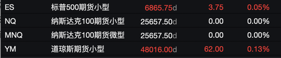 标普500期货涨0.05%,纳斯达克100期货基本持平,道琼斯期货涨0.13%