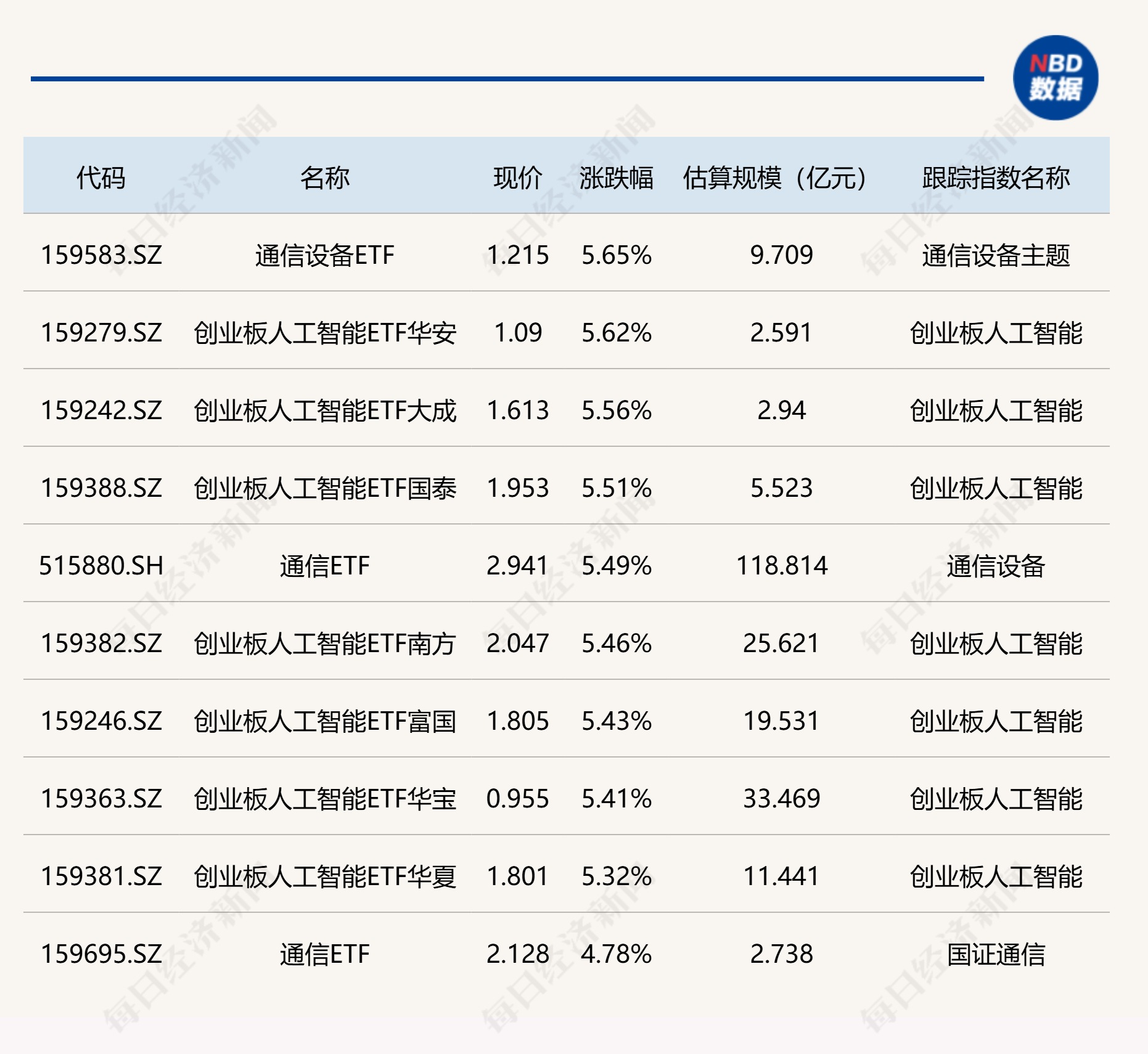 ETF今日收评 | 通信设备、人工智能相关ETF涨超5% 巴西ETF跌超6%