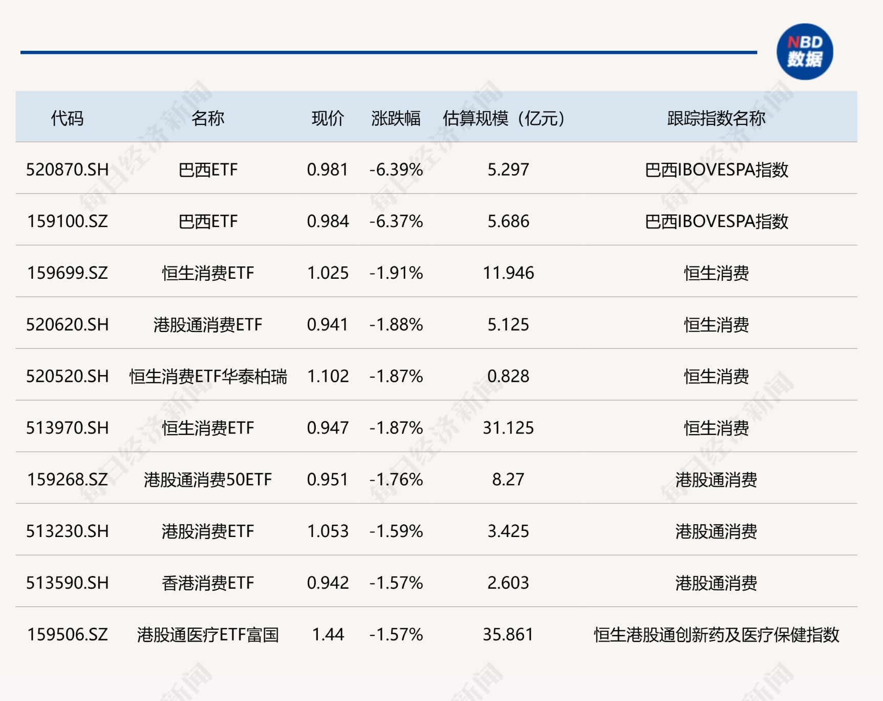 下跌方面,巴西ETF跌超6%。