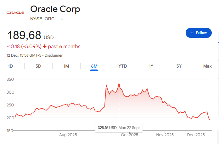 (甲骨文股价从高点大幅下跌)