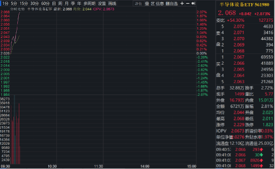 (原标题:2025年全球半导体设备销售额新高,半导体设备ETF(561980)高开盘中涨超2%,珂玛科技大涨13%)