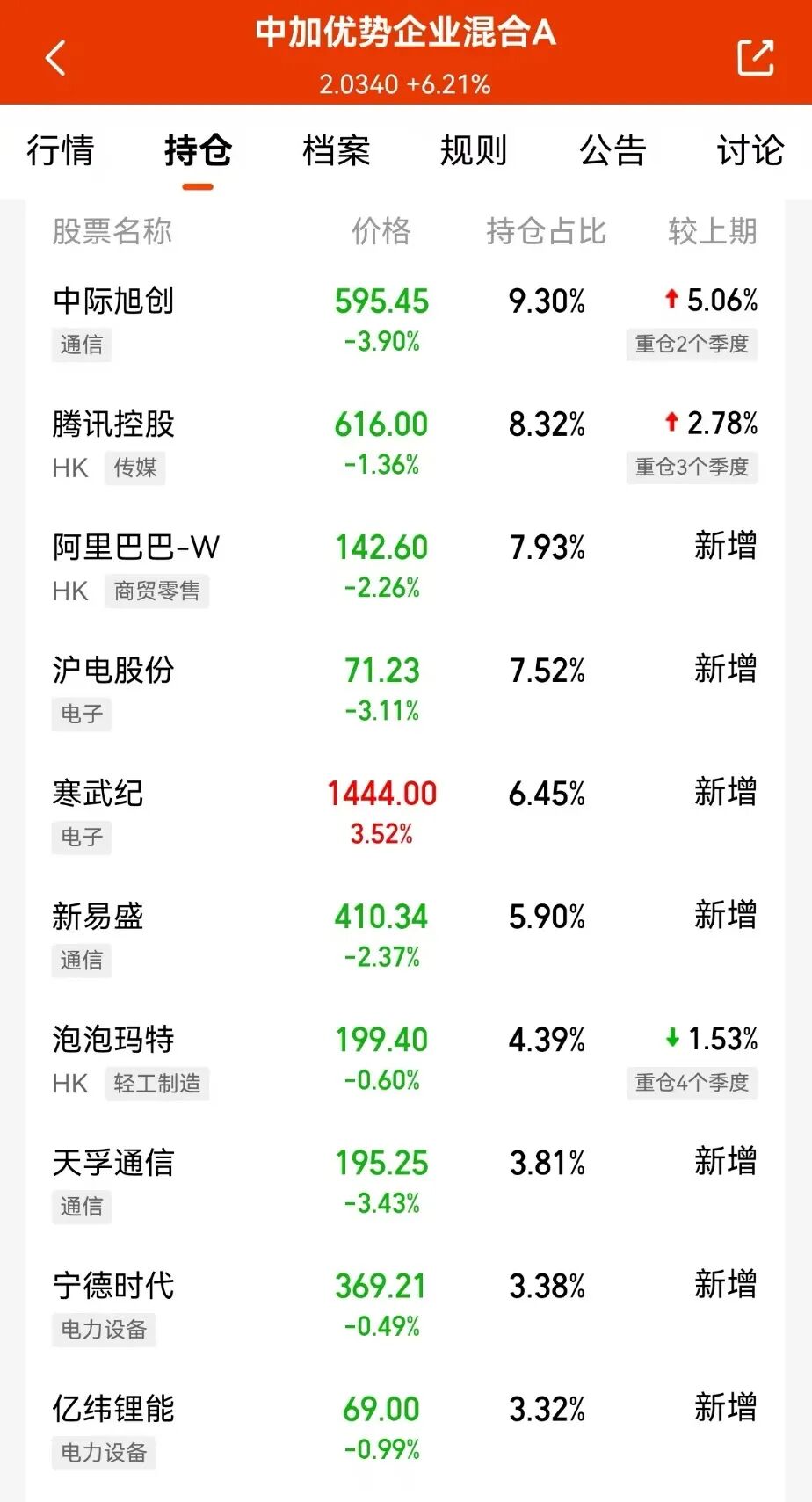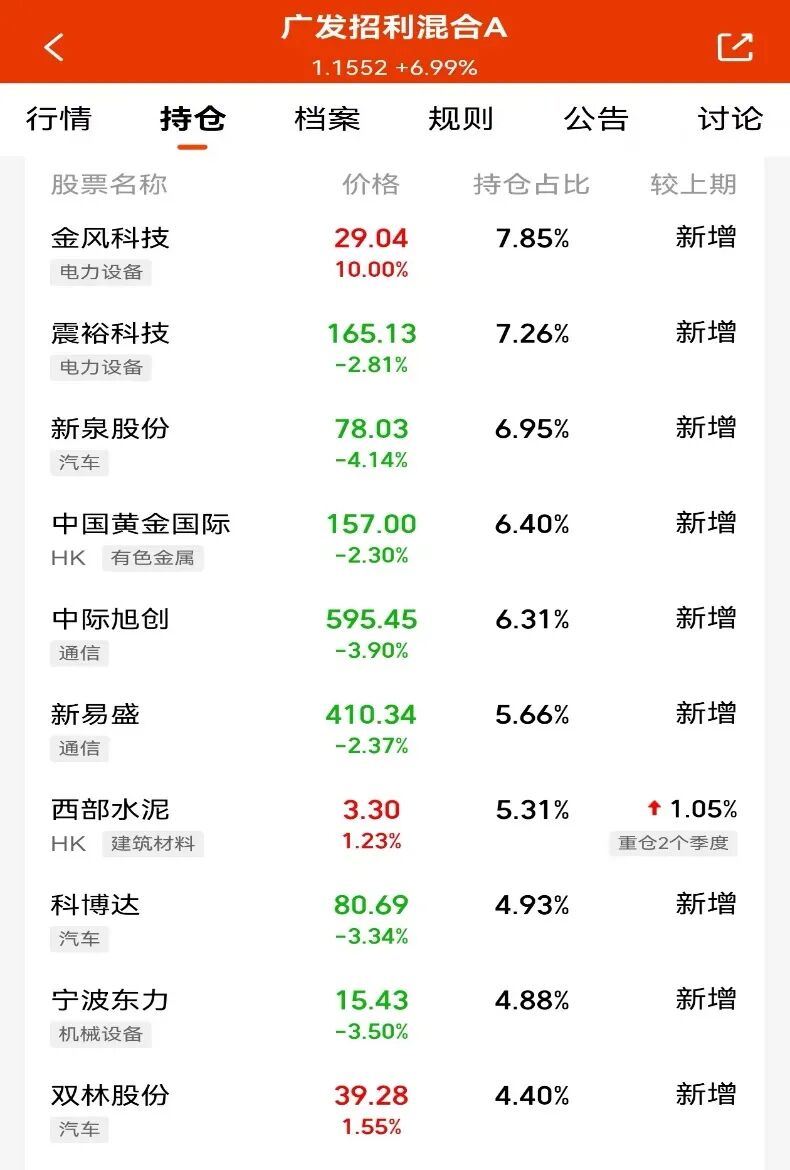 类似的还有汇添富竞争优势混合基金。1月7日该基金净值涨幅高达7.2%。从其2025年三季度末的前十大重仓股的市场表现看,1月7日有7只个股下跌,其中涨幅最高的东方铁塔上涨3.04%。值得注意的是,2025年10月,汇添富竞争优势混合基金经理从赵鹏飞变更为马磊。