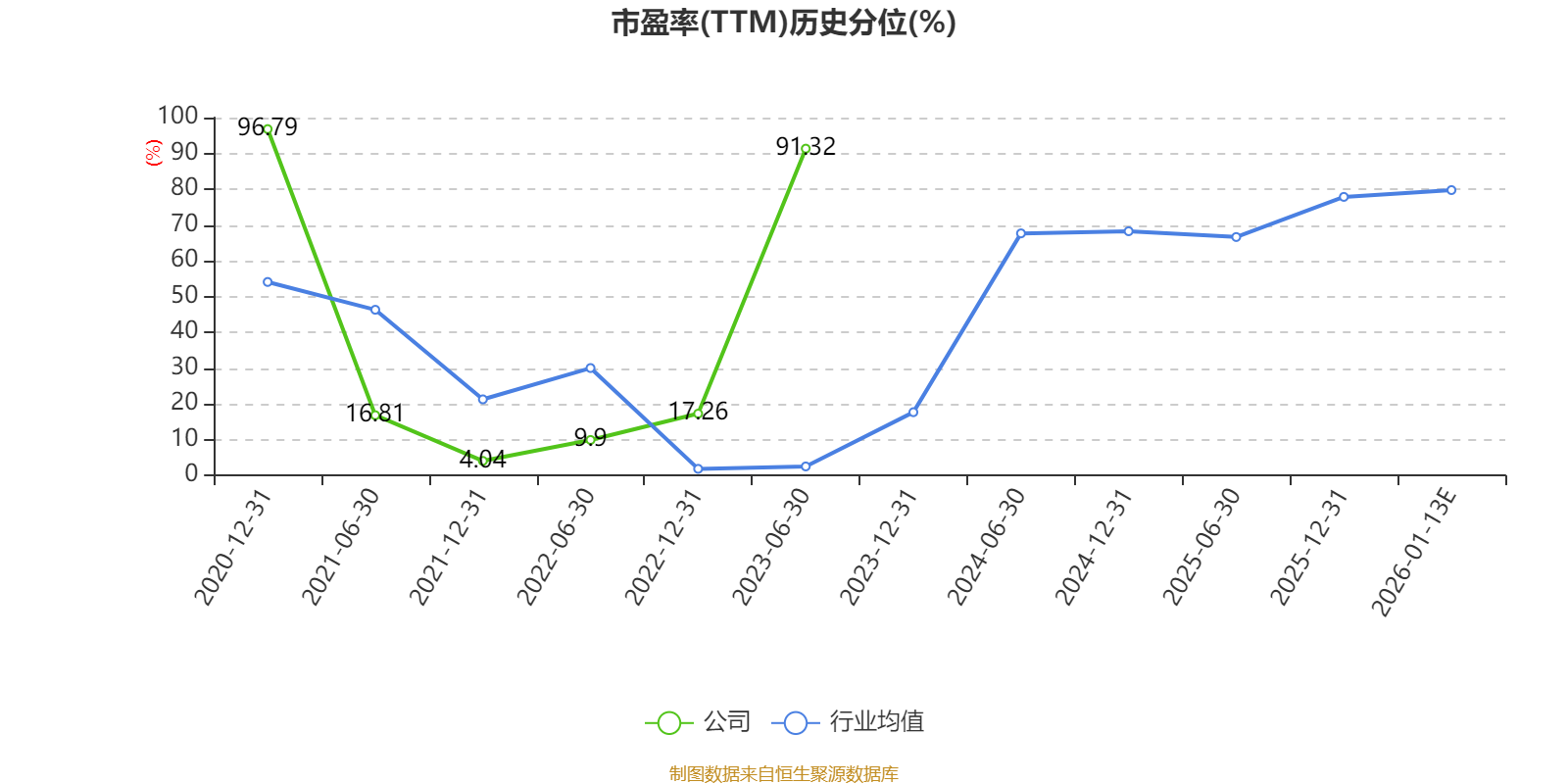 以本次披露业绩预告均值计算,公司近年市盈率(TTM)图如下所示:
