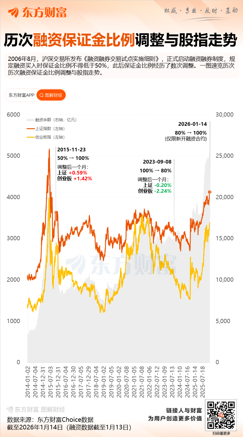 2026年1月14日,经中国证监会批准,沪深北交易所发布通知调整融资保证金比例,将投资者融资买入证券时的融资保证金最低比例从80%提高至100%。