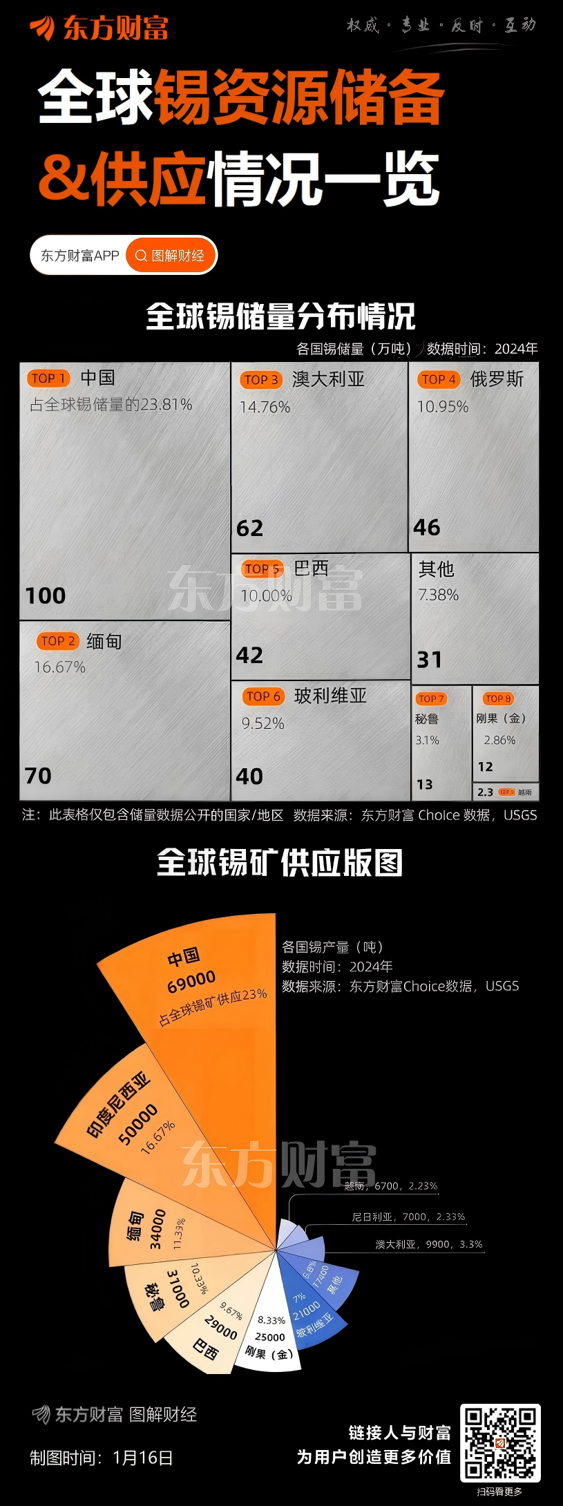 国泰君安期货有色及贵金属组高级分析师刘雨萱表示,近日锡价连续上涨,突破历史新高,冲破2022年高点,来到40万元/吨上方,周四开盘后继续上涨。近期影响锡价的因素包括:1、锡供给持续偏紧,缅甸复产迟迟未能上量,印尼因配额问题年初出口平淡,同时刚果金等非洲地区受到叛军冲突影响存减产预期。2、前期国内库存去化,国内社会库存水平处于历史中游,近两日国内期货库存有所累积。3、国内多地印发先进制造业升级方案,聚焦电子信息、新能源汽车等产业,市场普遍看好中长期电子产品和锡焊料对锡消费的带动。1月15日,市场基本消化基本面利多,沪锡期货价格涨幅有所收窄。尽管此轮锡上涨有逻辑支撑,但建议保持理性,谨慎参与。
