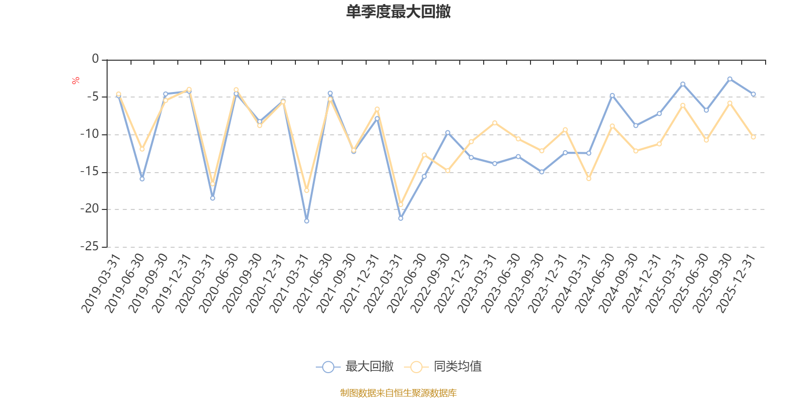 通过所选区间该基金净值增长率分位图,可以观察该基金与同类基金业绩比较情况。图为坐标原点到区间内某时点的净值增长率在同类基金中的分位数。
