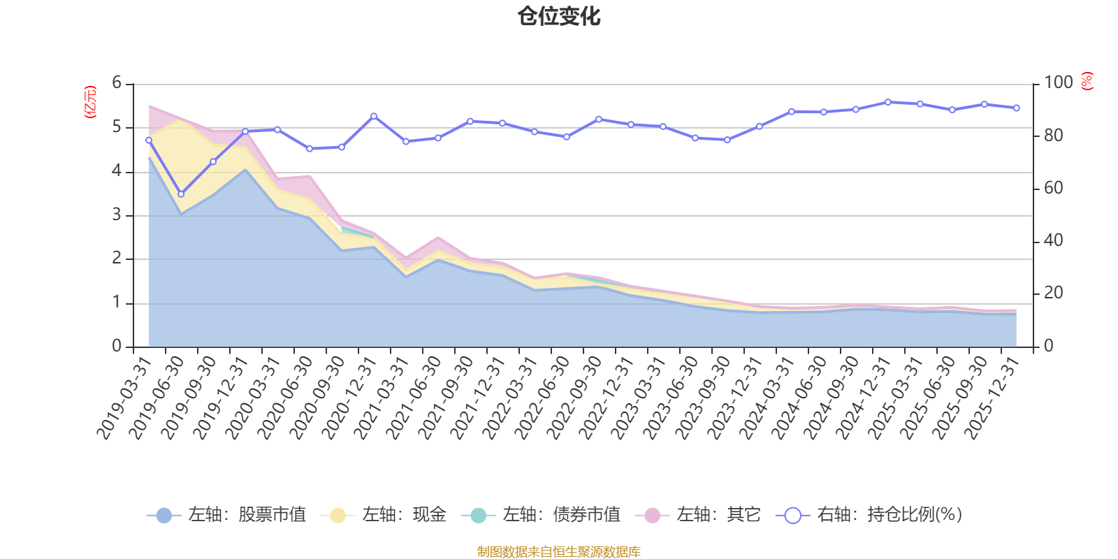 据定期报告数据统计,近三年平均股票仓位为87.79%,同类平均为84.04%。2024年末基金达到93.07%的最高仓位,2019年上半年末最低,为58.1%。