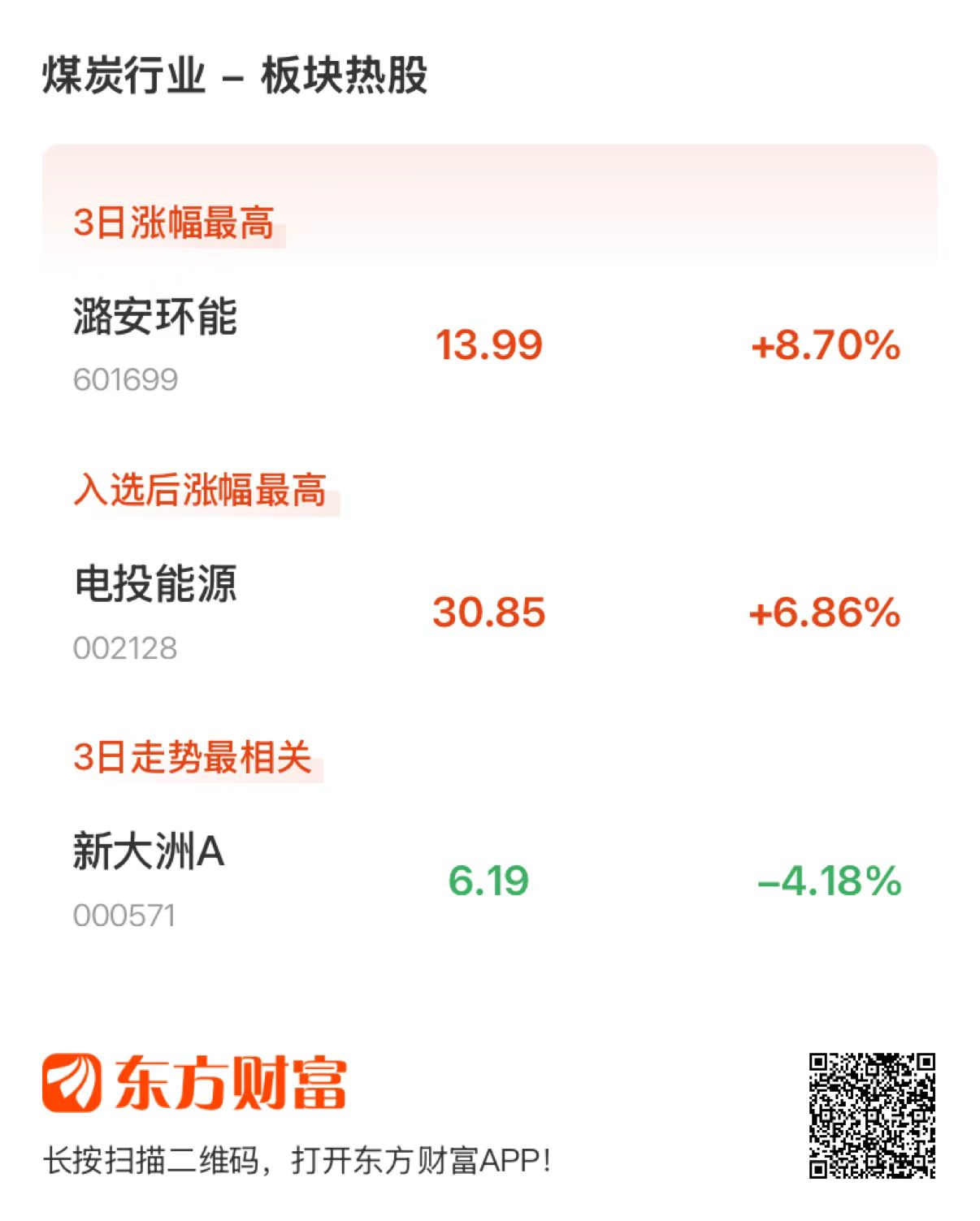 开源证券研报中指出,煤炭股双逻辑之一:周期弹性。当前动力煤和炼焦煤价格仍处于历史低位,为反弹提供了空间。随着供给端“查超产”政策推动产量收缩,以及需求端进入取暖旺季,煤炭供需基本面有望持续改善,两类煤种价格均具备向上弹性。其中,动力煤有长协机制修复和“煤和火电企业盈利均分”的逻辑支撑;而炼焦煤因市场化程度更高,对供需变化更敏感,可能展现出更大的价格弹性。煤炭股双逻辑之二:稳健红利。多数煤企依然保持了高分红的意愿,中报仍有6家上市煤企发布中期分红方案(中国神华/山西焦煤/陕西煤业/上海能源/兖矿能源/中煤能源)。资本市场在全球政经高度不确定以及国内稳经济的预期下,投资行为存在情绪上的脉冲,煤炭板块具备周期与红利的双重属性,当前煤炭持仓低位,基本面已到拐点右侧,已到布局时点。四主线精选煤炭个股将受益:主线一,周期逻辑:动力煤的【晋控煤业、兖矿能源】,冶金煤的【平煤股份、淮北矿业、潞安环能】;主线二,红利逻辑:【中国神华、中煤能源(分红潜力)、陕西煤业】;主线三,多元化铝弹性:【神火股份、电投能源】;主线四,成长逻辑:【新集能源、广汇能源】。