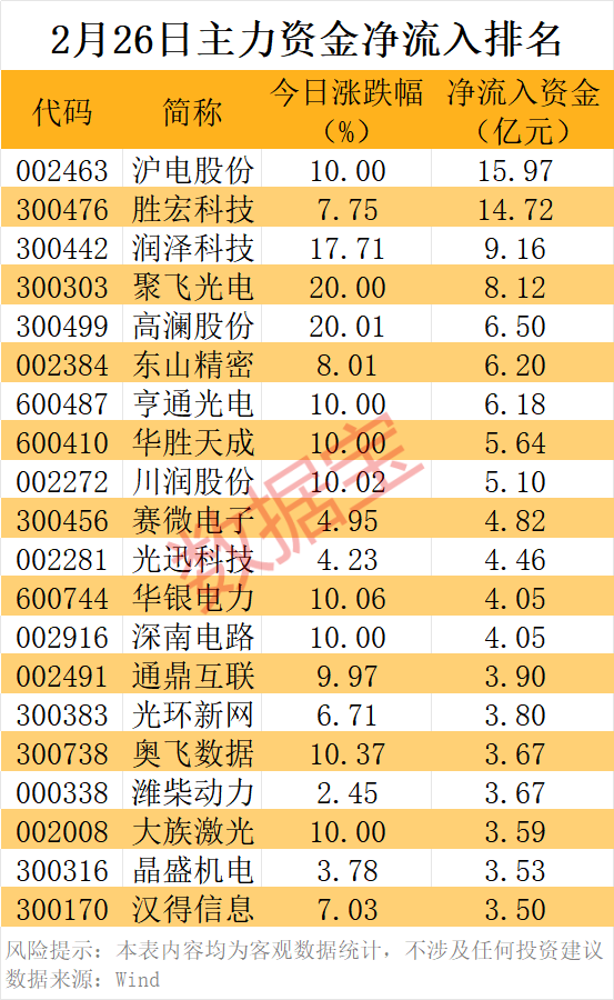 从资金流向看,AI硬件概念股中,润泽科技、聚飞光电、高澜股份、东山精密、亨通光电、华胜天成、川润股份主力资金净流入均超5亿元。