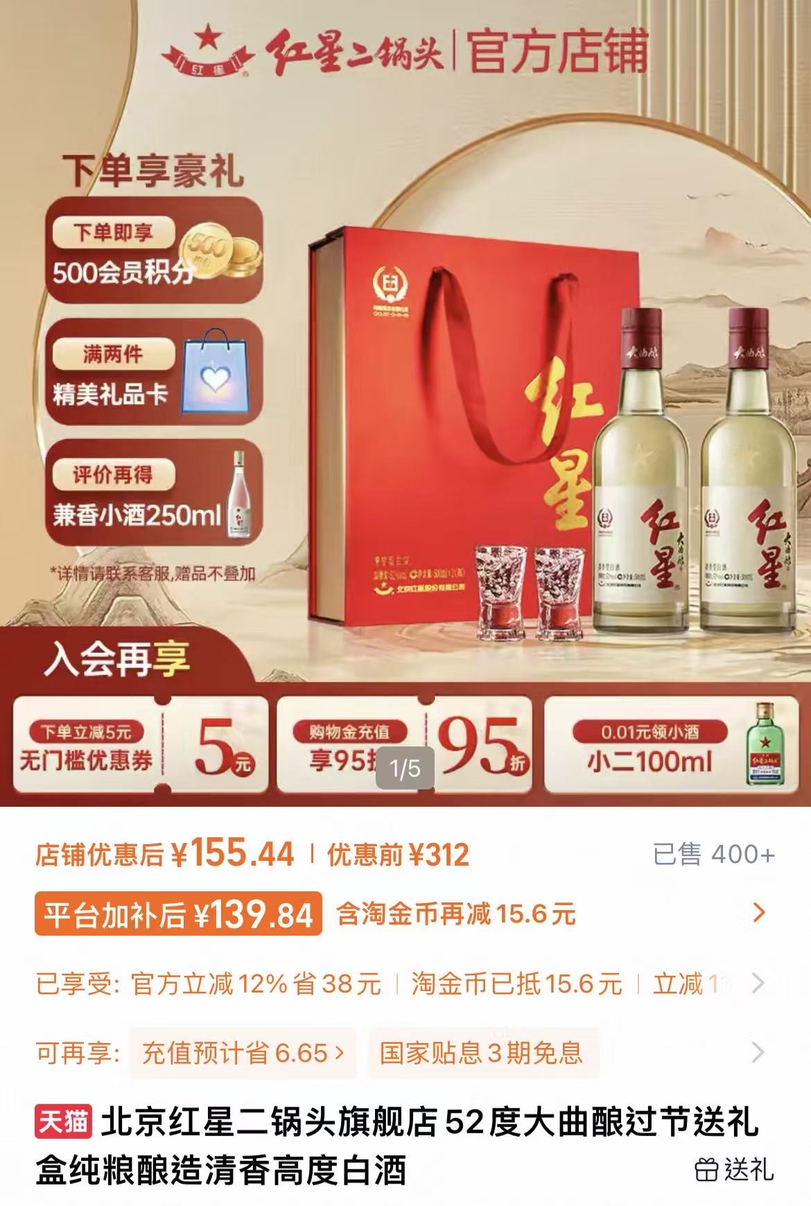 值得注意的是,口粮酒并非只有单瓶装的光瓶酒。地方性白酒也会推出价格亲民的年节礼盒,例如北京周边就有牛栏山、红星等品牌,双瓶装礼盒在100-200元区间,满足消费者细分的价格需求。